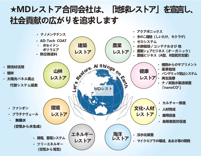 日本が誇る最先端技術を国内でレストア(元に戻す)事業にて推進して参ります。(各産